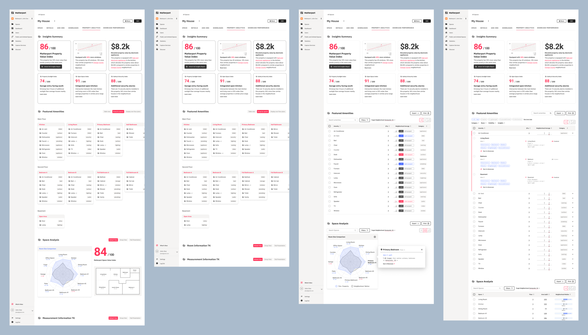 Initially, we put emphasis on providing comprehensive benchmark reports to offer deeper insights into the properties. Therefore, the initial exploration and design direction was closer to a dashboard.