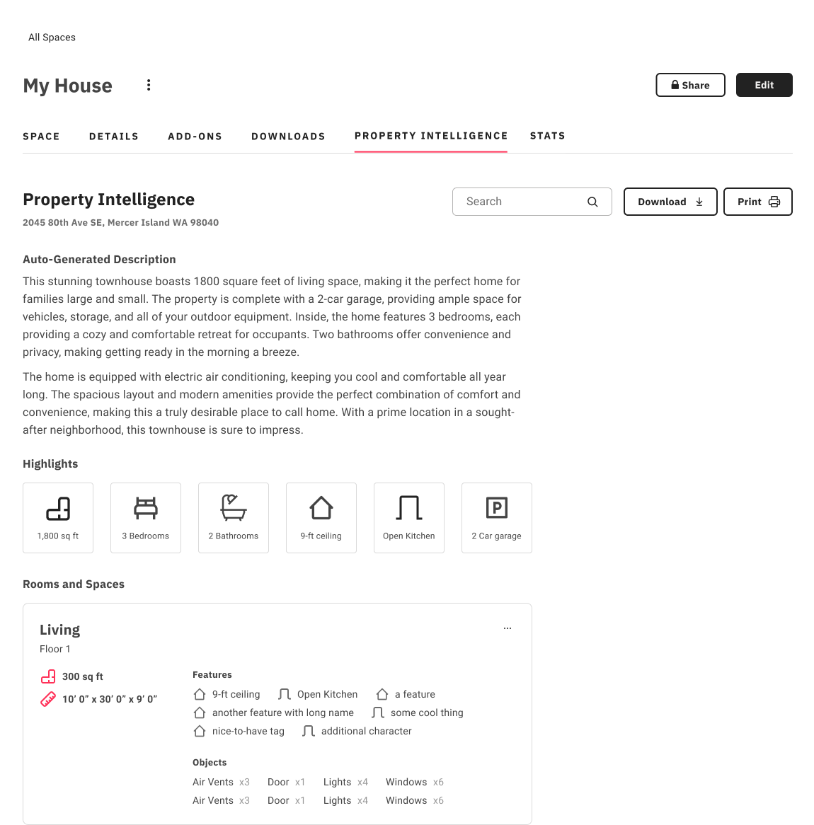 The design focus shifted to conveying a number of data entries with legibility, primarily to assist real estate agents in their listing process. However, we also discovered that agents desired the ability to produce informational documents for their potential clients. Once again, we adjusted our concept and concentrated on finding a sweet spot between a fact sheet and informative material for potential homebuyers.