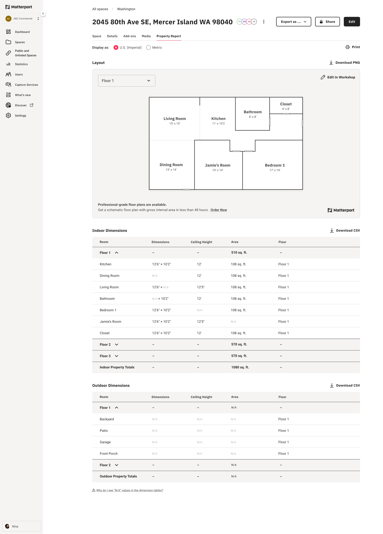 Matterport Property Report provides room dimensions and floor plans with great accuracy, already assisting in reducing listing time for agents. Furthermore, the report will continue to expand with additional information such as appliances, wall colors, and neighborhood benchmarks.